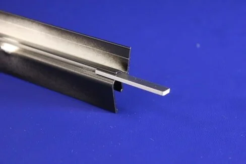 Если представить, что профиль багета в разрезе - это стул, то его “спинка“ - это крепежная планка, куда вкручиваются саморезы, а “ножки стула” называются “губы“. Резиновый гарпун, припаянный к краю полотна заводится и фиксируется между этих самых губ. А по окончанию монтажа на заднюю губу надевается маскирующая лента.