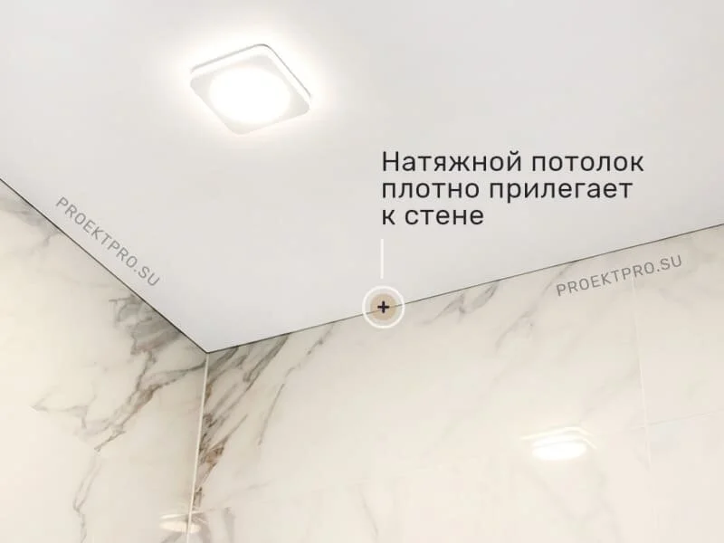 Но вы должны быть готовы к тому, что при выключенном свете в щель между полотном и стеной может быть видно профиль, если подойти вплотную к стене. Хотя, кроме как во время приемки выполненных работ, вы вряд ли будете туда заглядывать.