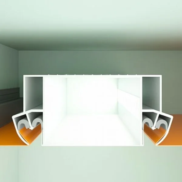 Полотно должно пропускать свет, поэтому плотные темные материалы для такого типа потолка не используются. Стоит такой профиль в районе 150 руб за погонный метр.