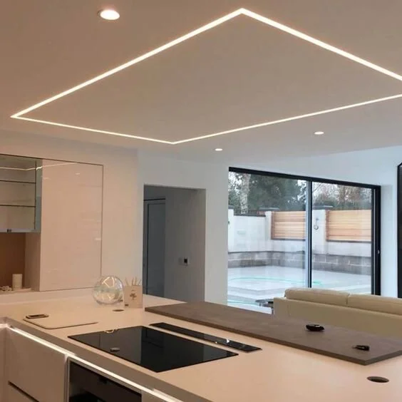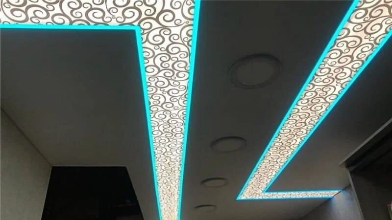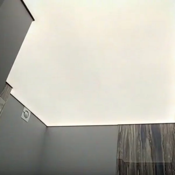 Примечательной особенностью контурного потолка с подсветкой является то, что при включенном свете вы видите этот контур, а при выключенном он полностью скрывается за полотном, как будто перед вами обычный натяжной потолок.