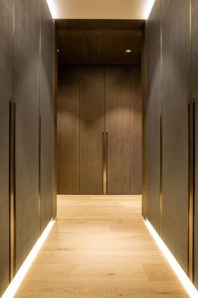 Световые линии на потолке - классное решение. Особенно интересно, когда получается их грамотно продолжить на прилегающих стенах. Благодаря этому создаются очень необычные архитектурные иллюзии. И, опять же, четкие световые линии не всегда уместны в чисто классических интерьерах.