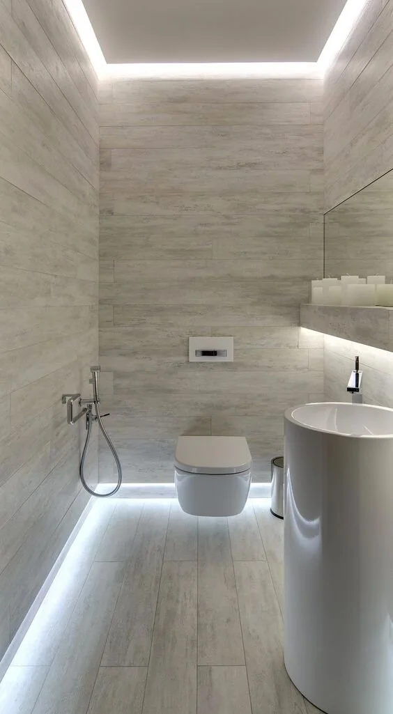 “А если на какой-то из стен у вас запланирована зеркальная стена, не монтируйте зеркало под потолок. Отступите на несколько сантиметров ниже, иначе зеркало отразит неприглядные “внутренности“”