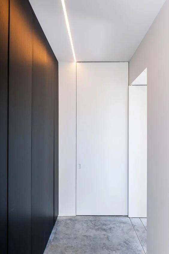 Некоторые профили для световых линий позволяют дополнять конструкцию шинопроводами, в которые вставляются трековые светильники. Например, система Slott от производителя крабов. Погонный метр такого профиля стоит 1700 рублей. Есть еще похожий профиль ноунейм по 450 рублей за м.п. Но он уже не такой изящный.