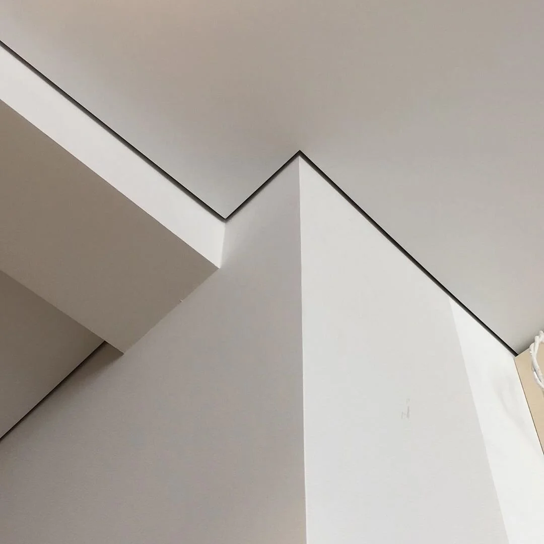 Но отмечу, что теневой натяжной потолок - идеальное решение для стен с рельефным покрытием или 3D-панелями. Также с ним кривизна стен будет заметна меньше, нежели при наличии маскировочной ленты, повторяющей все неровности и акцентирующей на них внимание. А еще вы всегда сможете с легкостью перекрашивать стены или переклеивать обои, заводя их в этот технологический зазор.