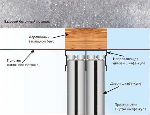 Ну, во-первых, закладные под встроенную мебель, светильники и карнизы. Даже если вы не планируете заказывать шкаф до потолка сейчас, вполне возможно, в какой-то момент вы на это решитесь. Вовремя смонтированные закладные за потолком уберегут вас от головной боли после: как построить шкаф без щели сверху, не будет ли его крыша подпирать и портить потолок, к чему крепить направляющие для дверей-купе и пр. К таким скрытым закладным из бруса также монтируются потолочные карнизы для штор. И не забывайте про потолочные светильники, которые вы, возможно, захотите навесить позже. Например, над обеденным или рабочим столом, трековые светильники в коридоре… Для каждого из них требуется закладная с электровыводом за потолком.