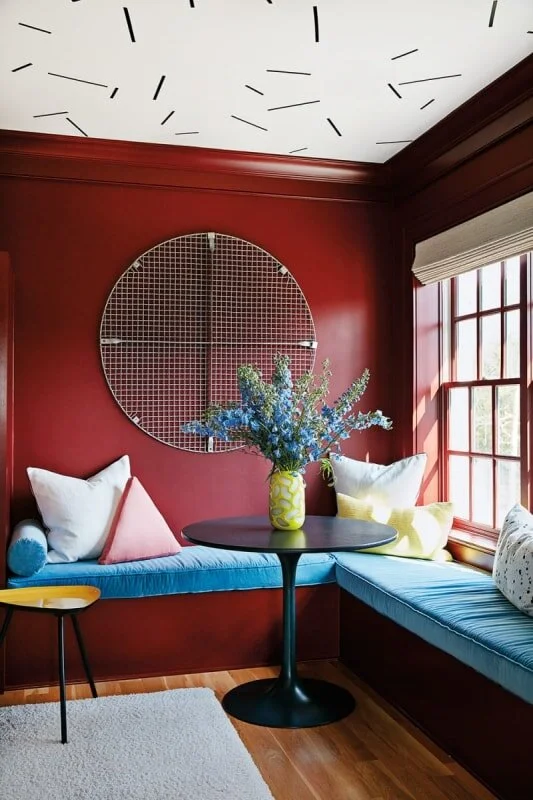 Почему бы и нет! Если вы не просто выбираете цвет по каталогу, а подбираете конкретный, гармонирующий с остальным интерьером и декором, то все в порядке. Оторванно от остального интерьера выбивающийся цветной потолок ядовитого цвета станет катастрофой.