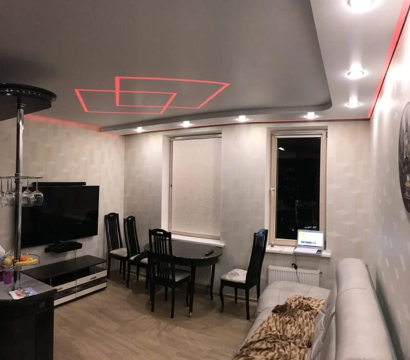Хотите современный и красивый натяжной потолок, как на фото ниже, но не готовы выложить 200+ тысяч рублей? Тогда читайте дальше!